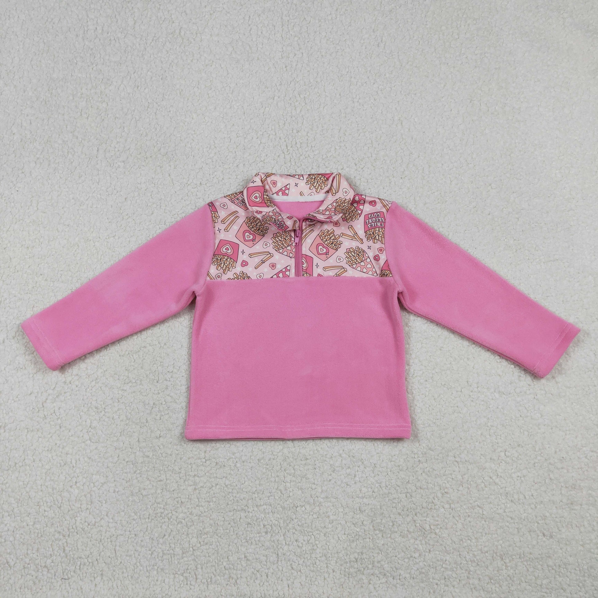 GT1504 Baby Girls Pink Hearts Chip Zipper Pullover Valentines Sherpa Tops