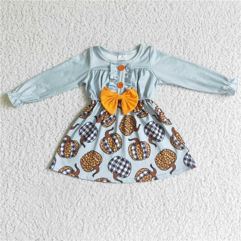 kids leopard pumpkin Dress with bowties GLD0007