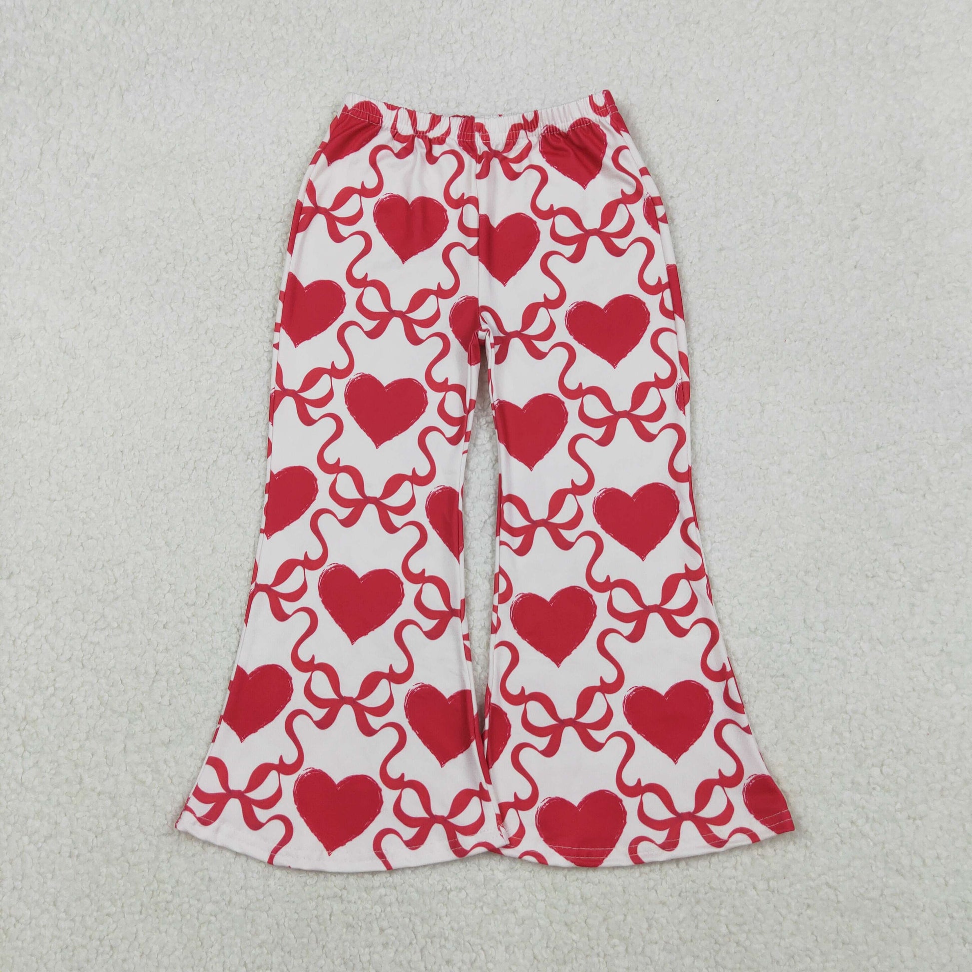 P0895 Baby Girls Red Bows Hearts Checked Valentine Flare Bottom Pants