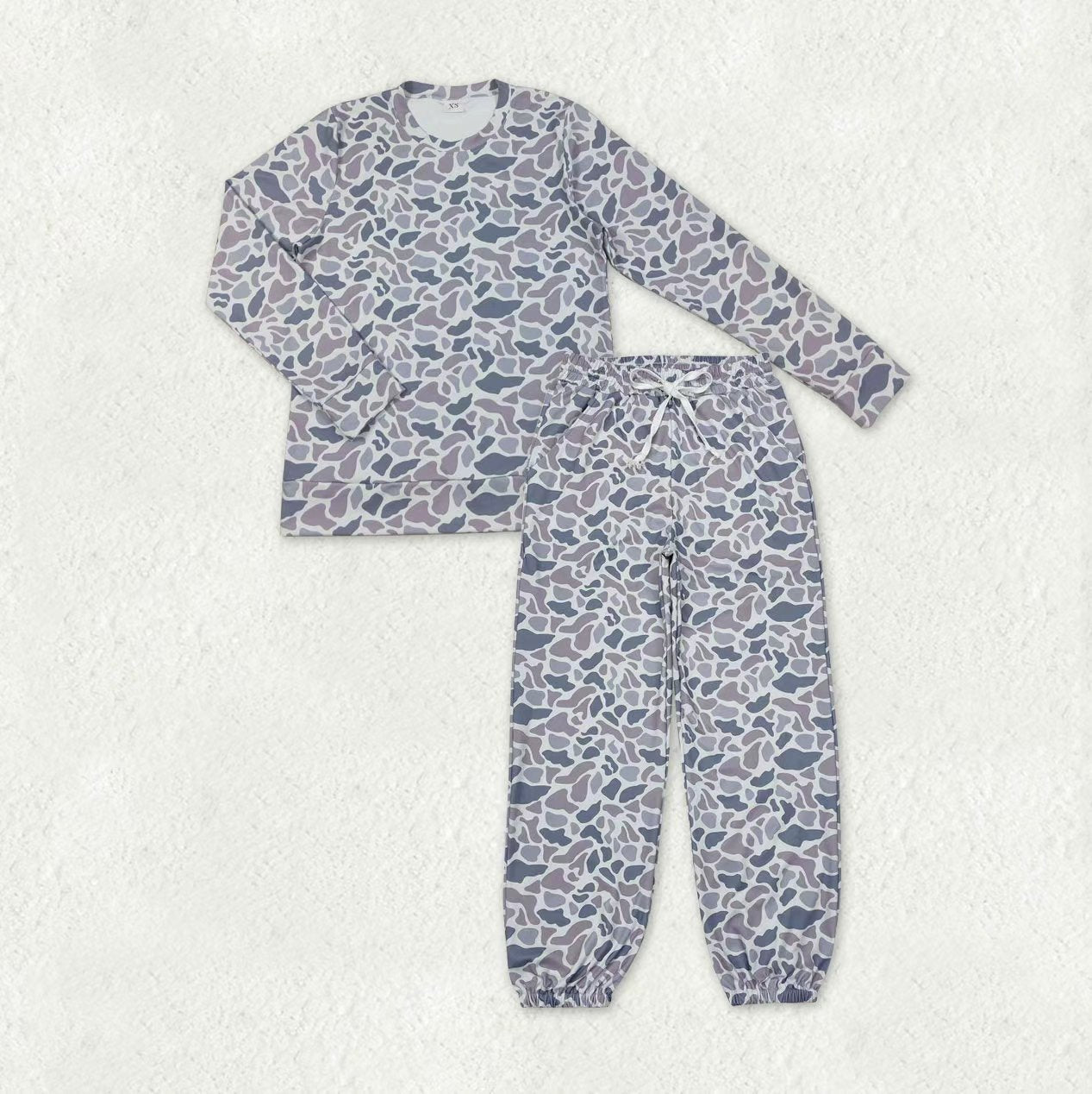 Sibling Adult Women Grey Camo Top Pockets Jogger Yoga Active Clothes Sets