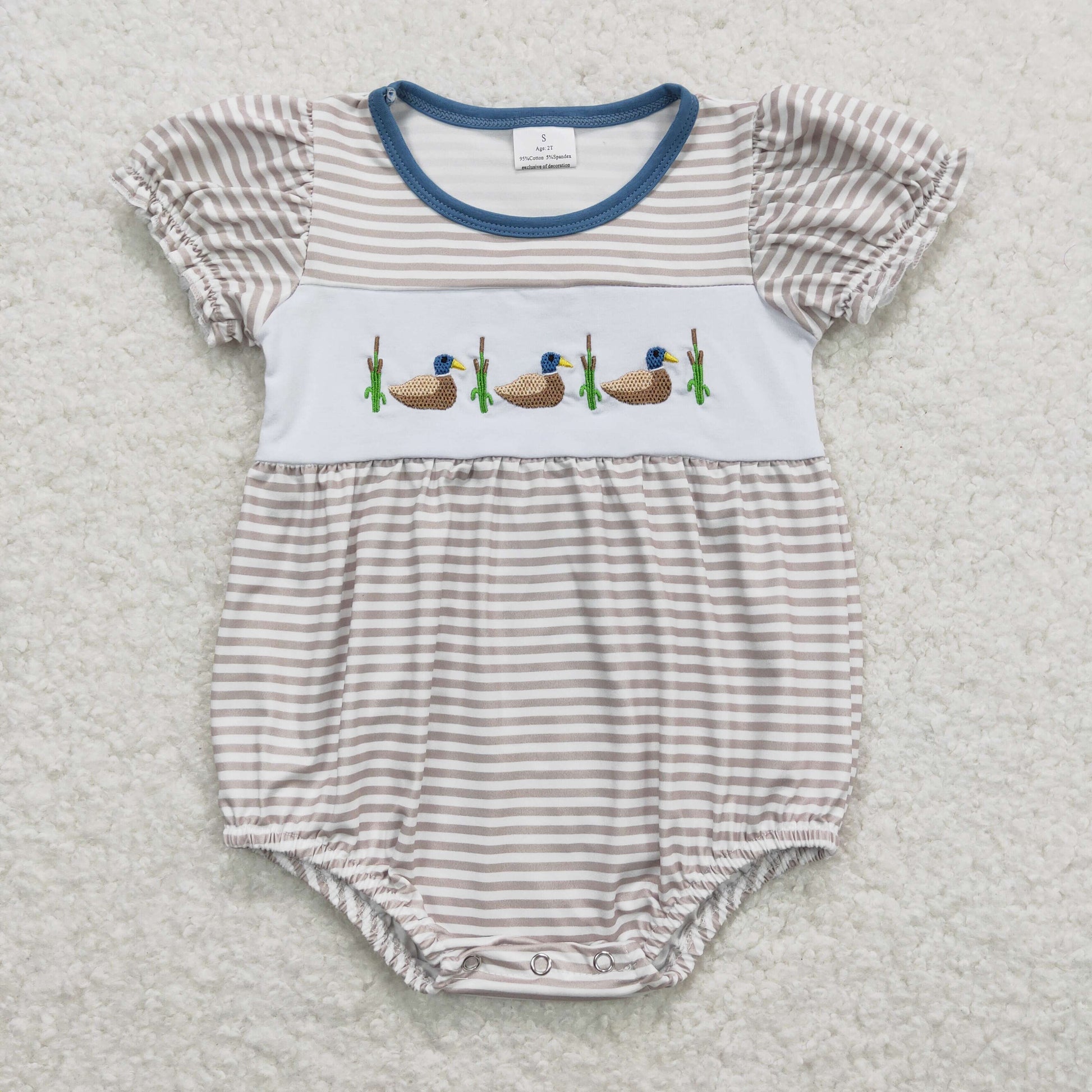 Sibling Baby Boys Girls Embroidery Ducks Stripe Hunting Clothes Sets Rompers
