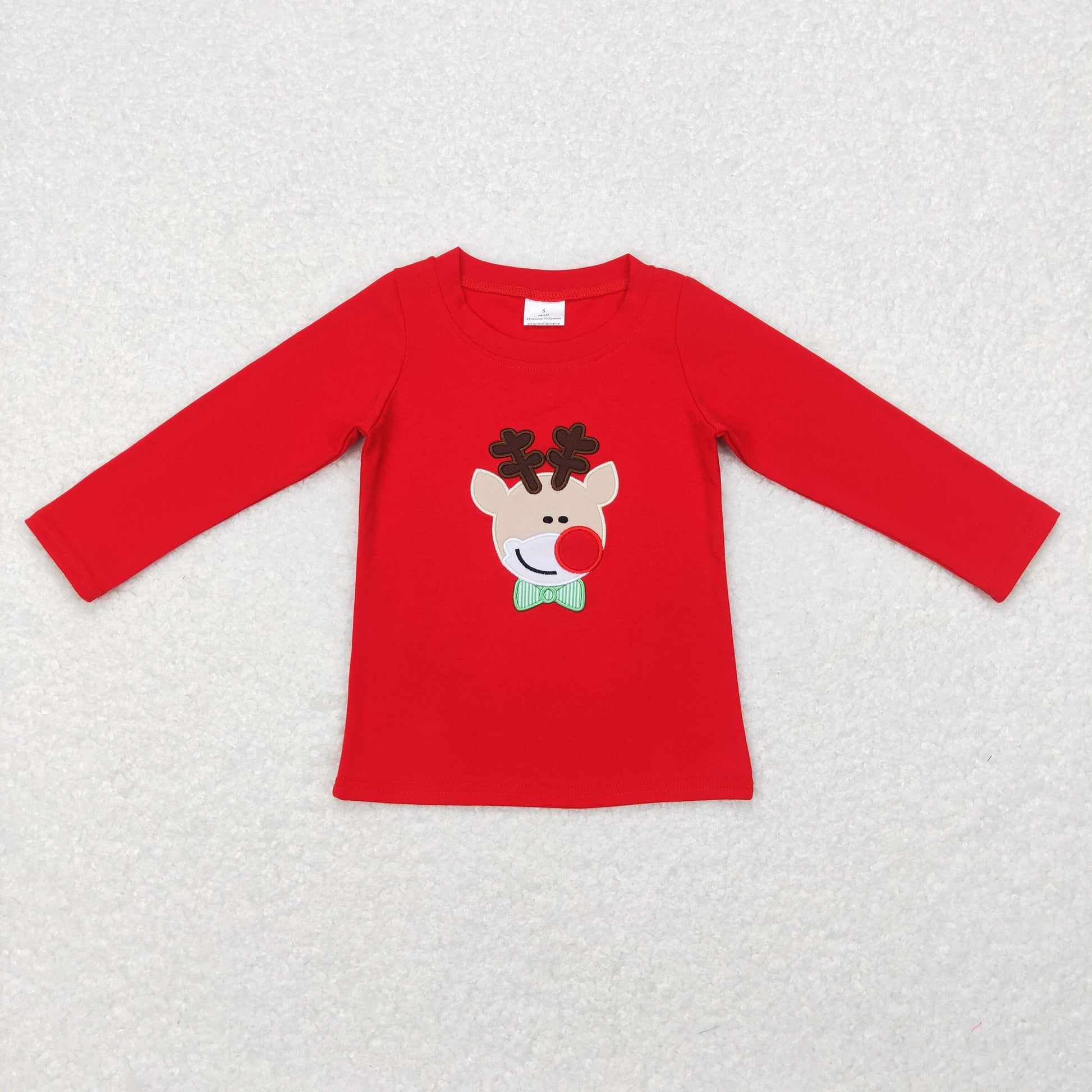 Sibling Baby Boys Girls Embroidery Santa Trees Deer Christmas Tee Shirts Top