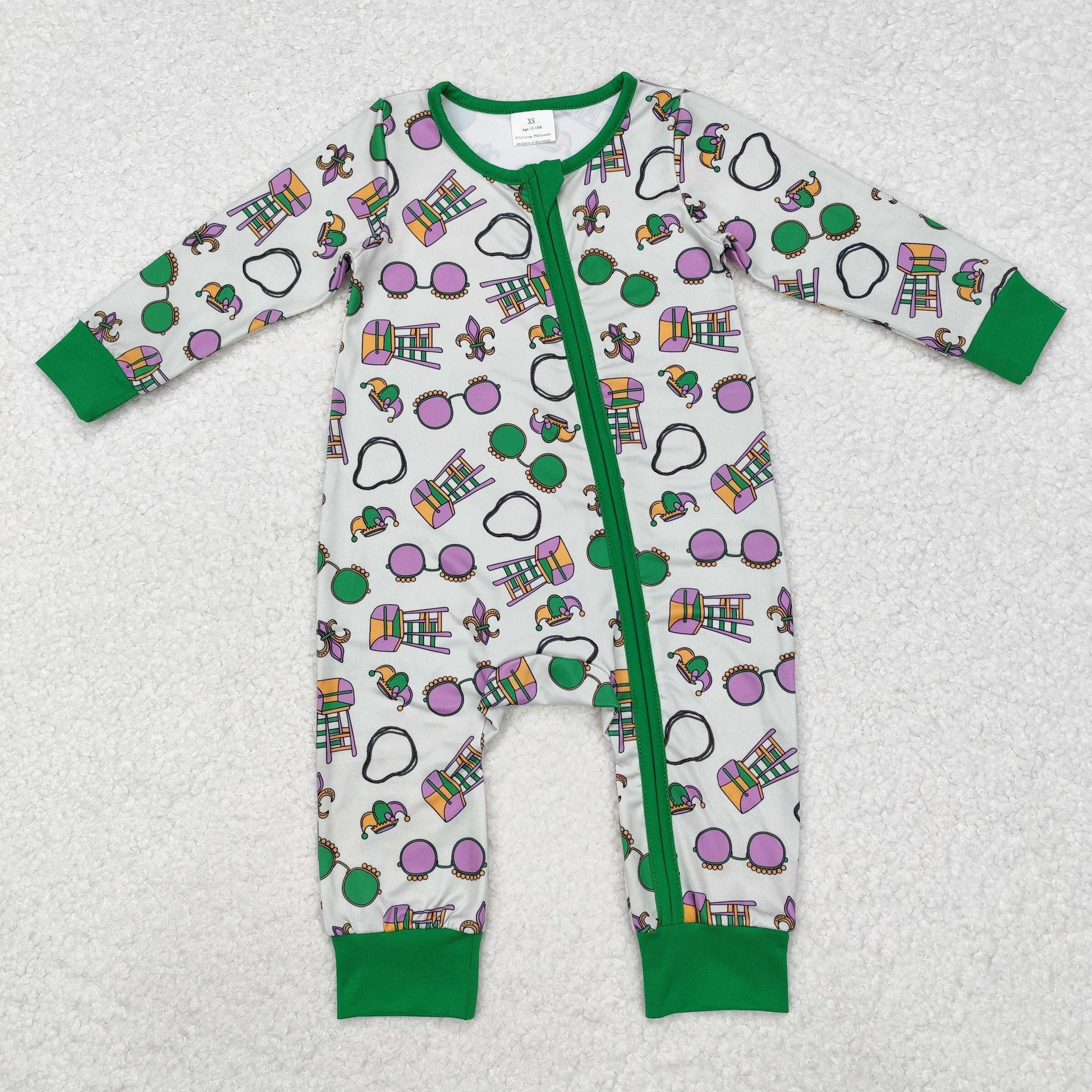 Sibling Baby Boys Girls Long Sleeves Mardigras Two Way Zip Convertible Rompers