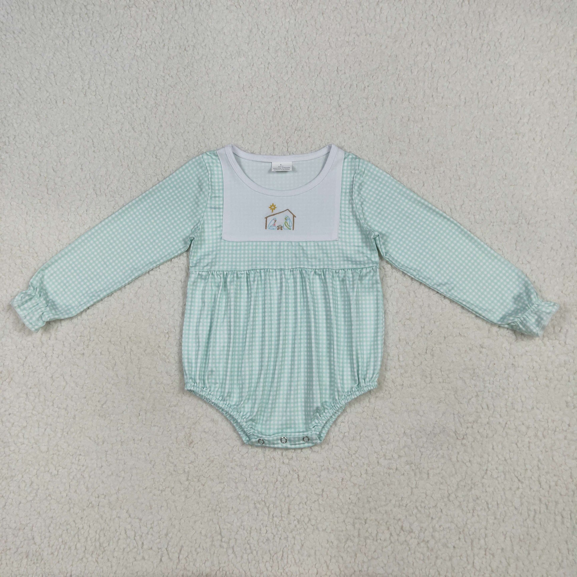 Sibling Baby Girls Blue Christmas Nativity Jesus Rompers Outfits Sets