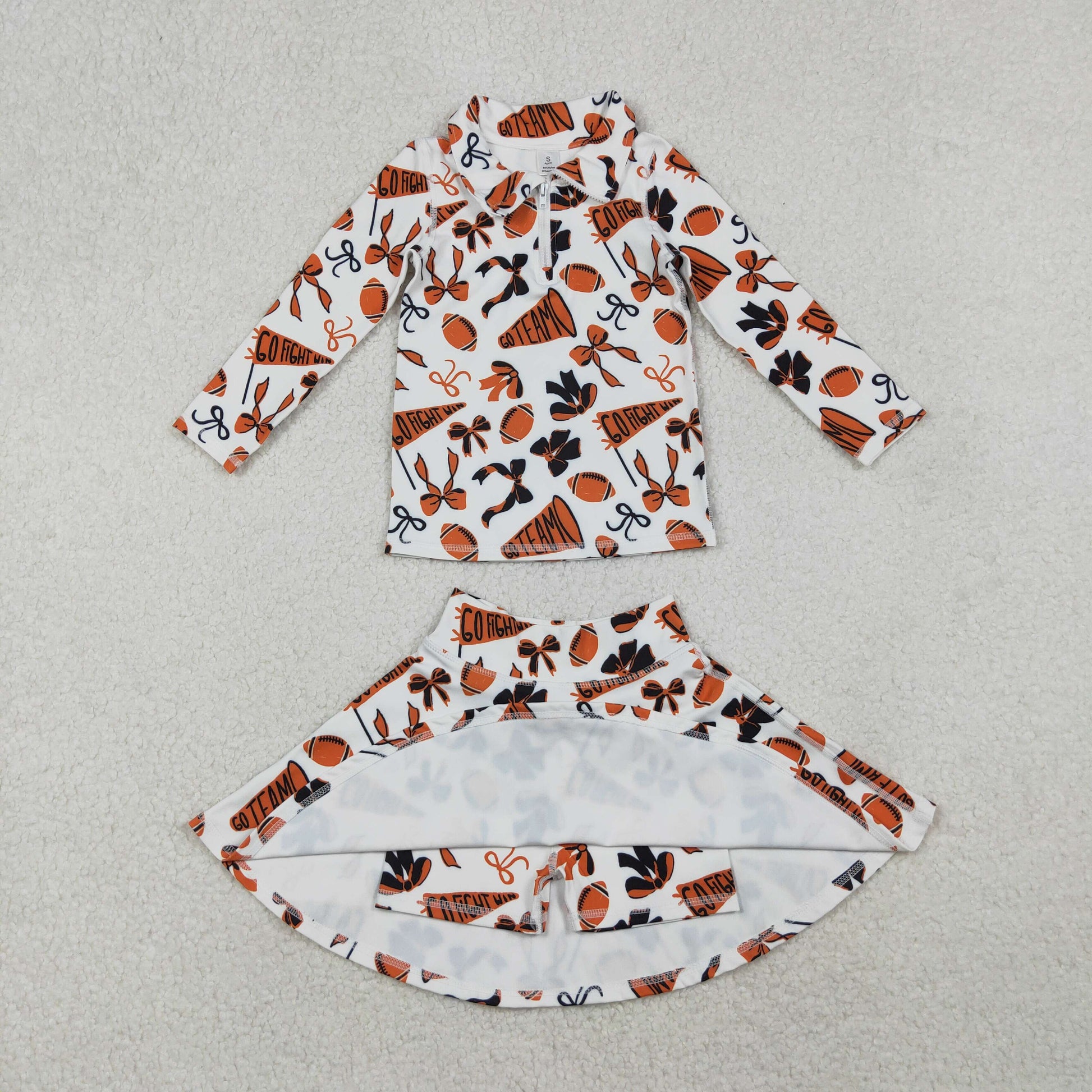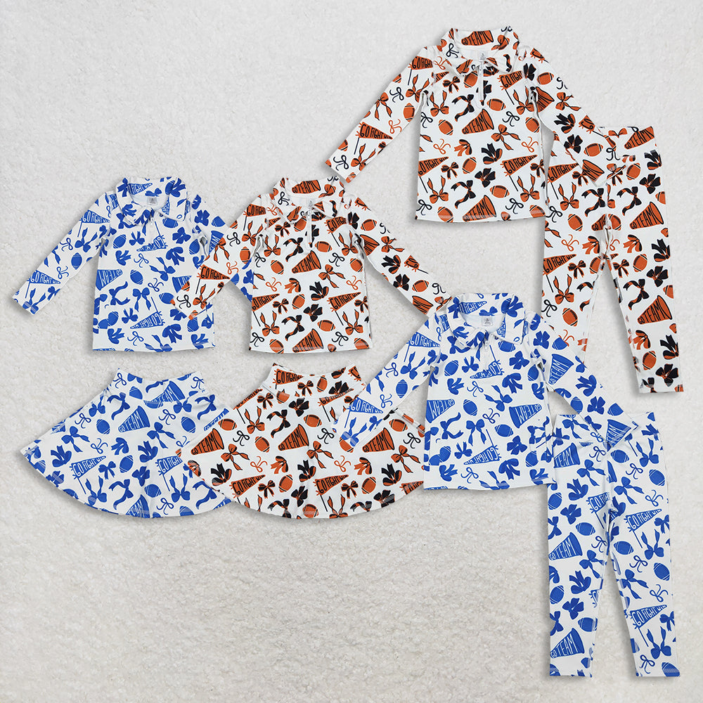 Sibling Baby Girls Bows Footballs Go Team Zipper Pullover Leggings Skorts Yoga Active Clothes Sets