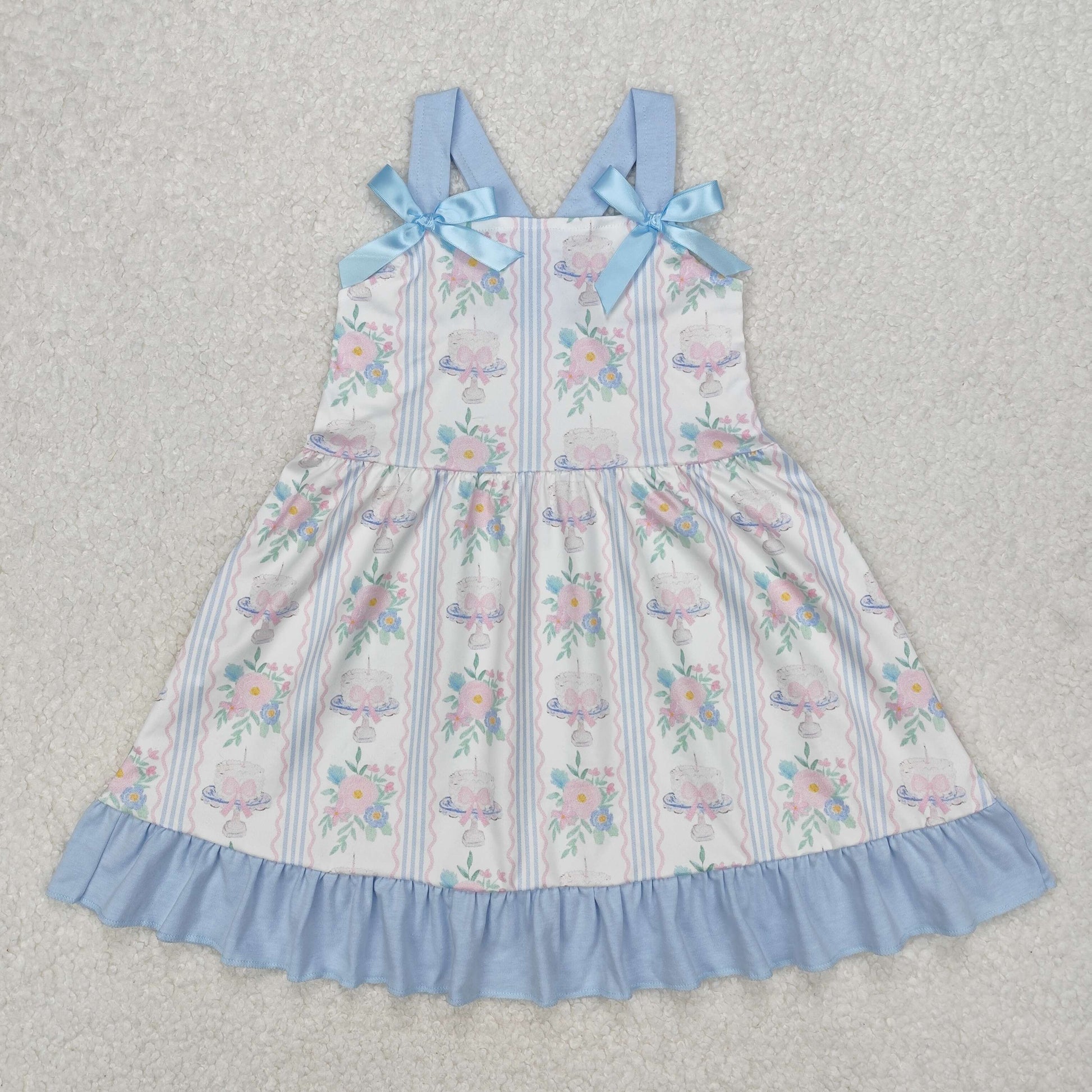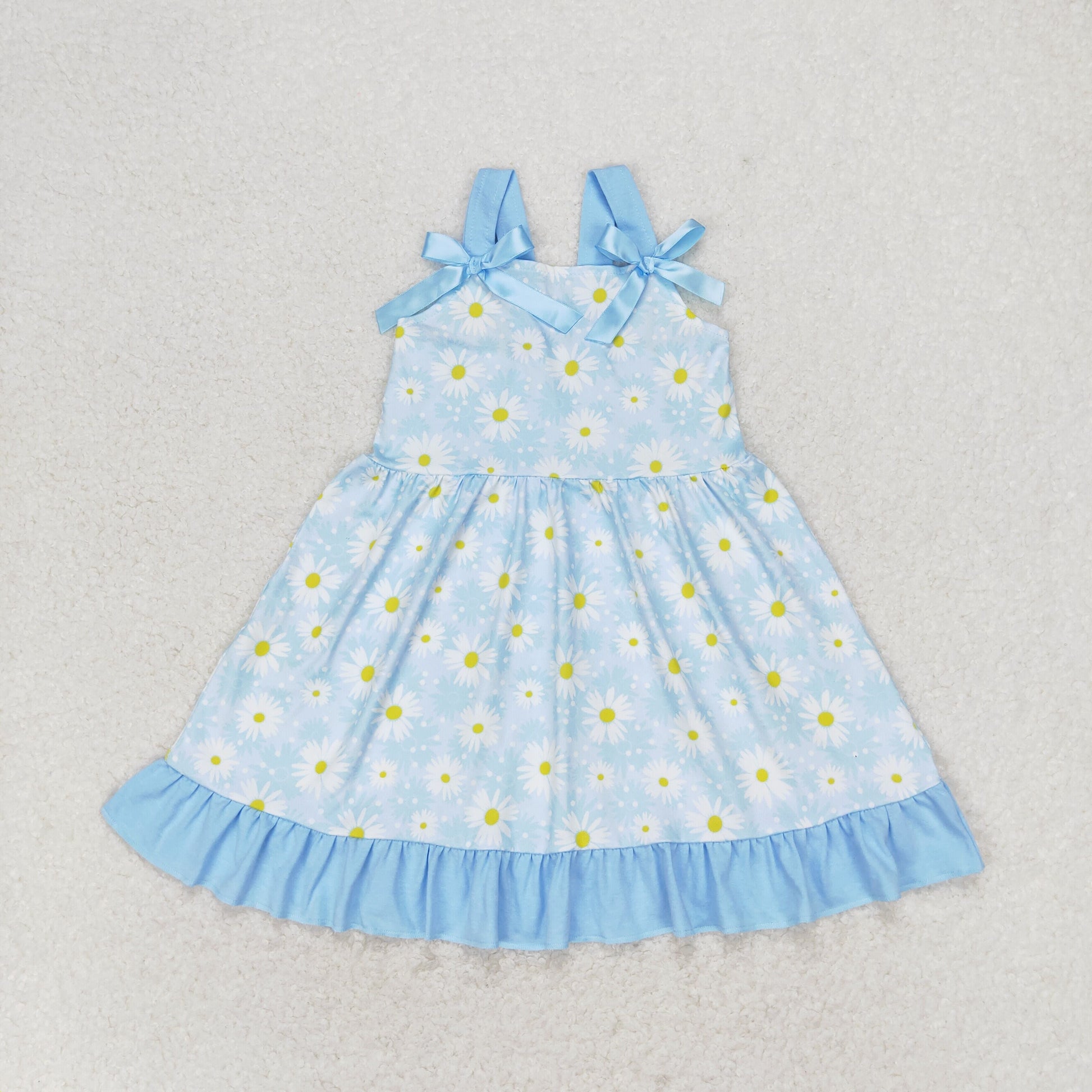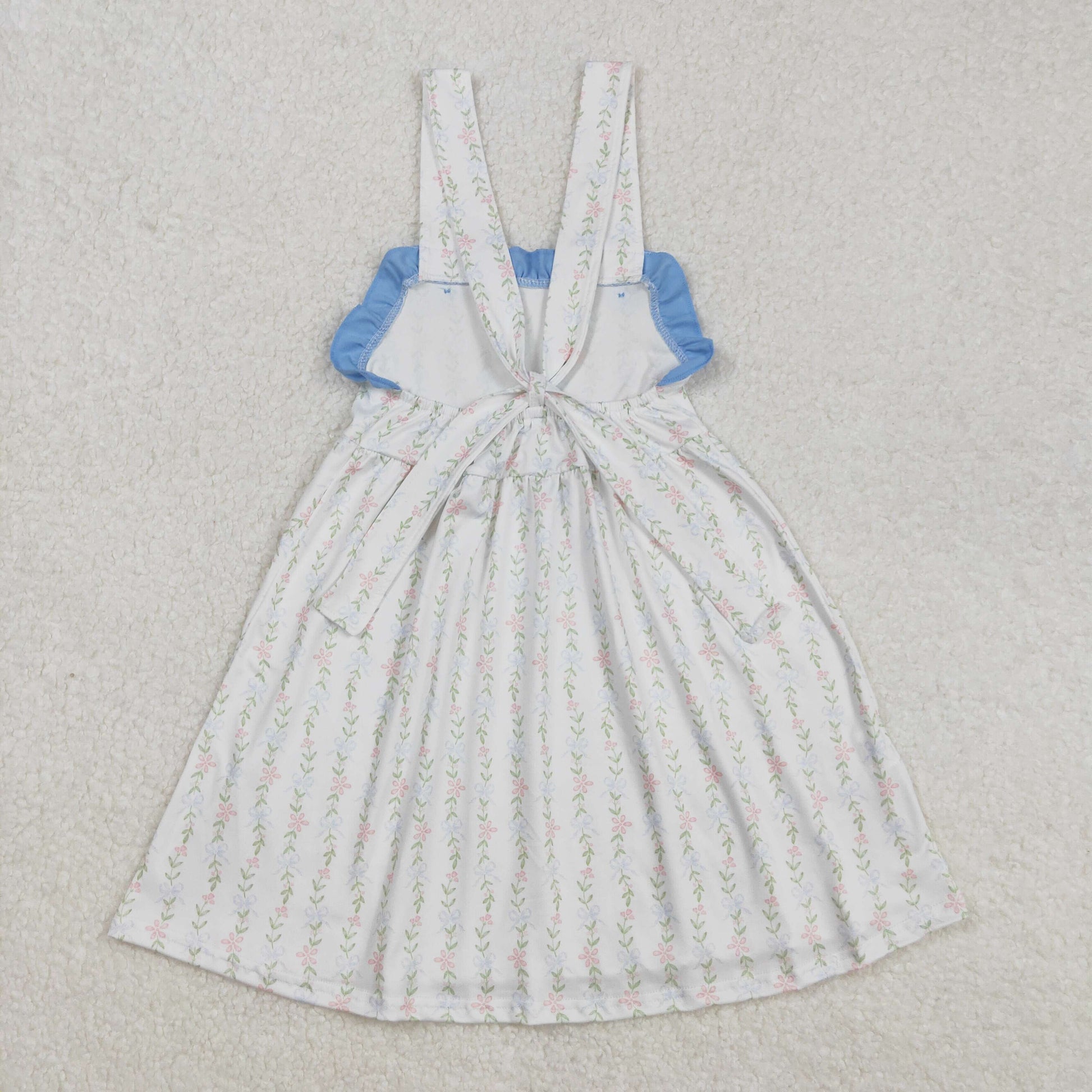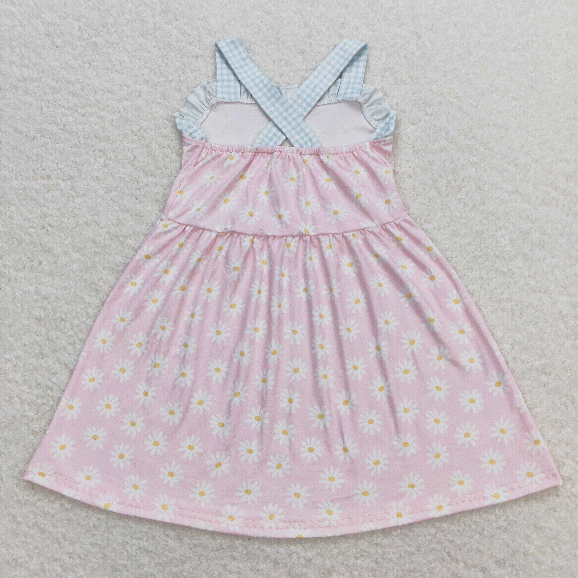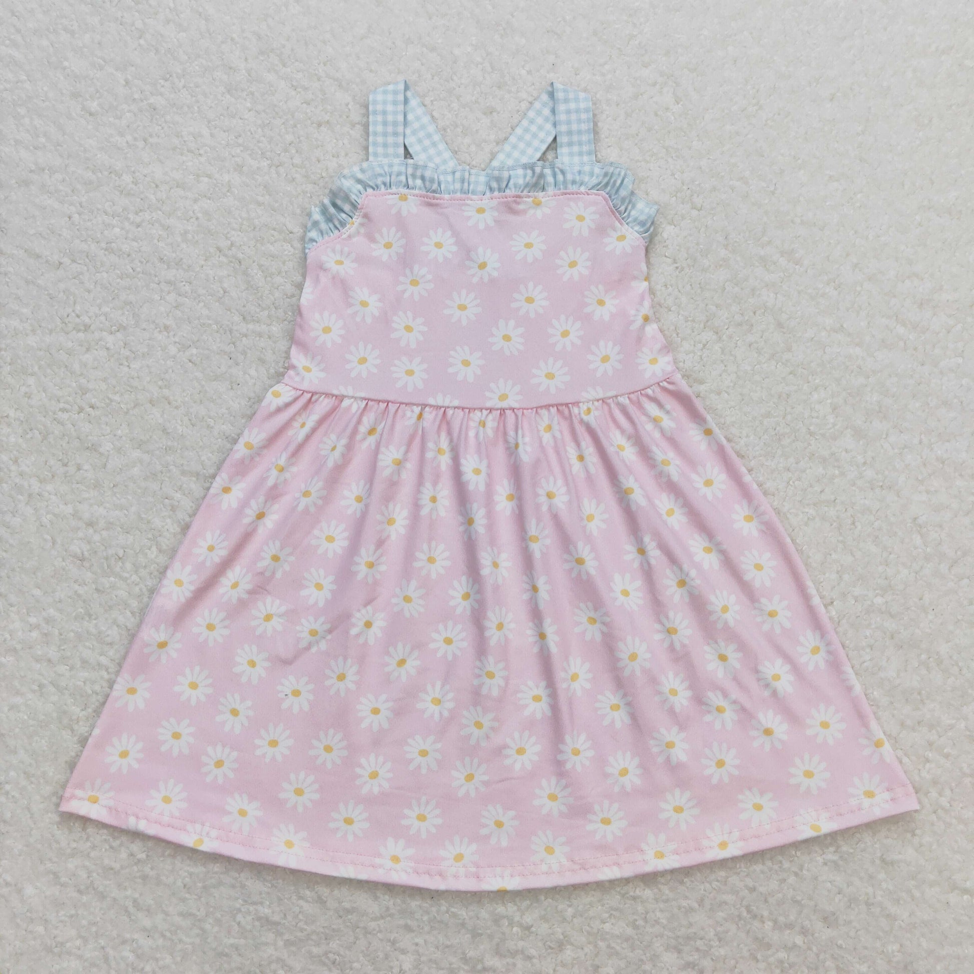 Sibling Baby Girls Bows Strap Button Pockets Floral Plaid Ruffle Knee Length Dresses