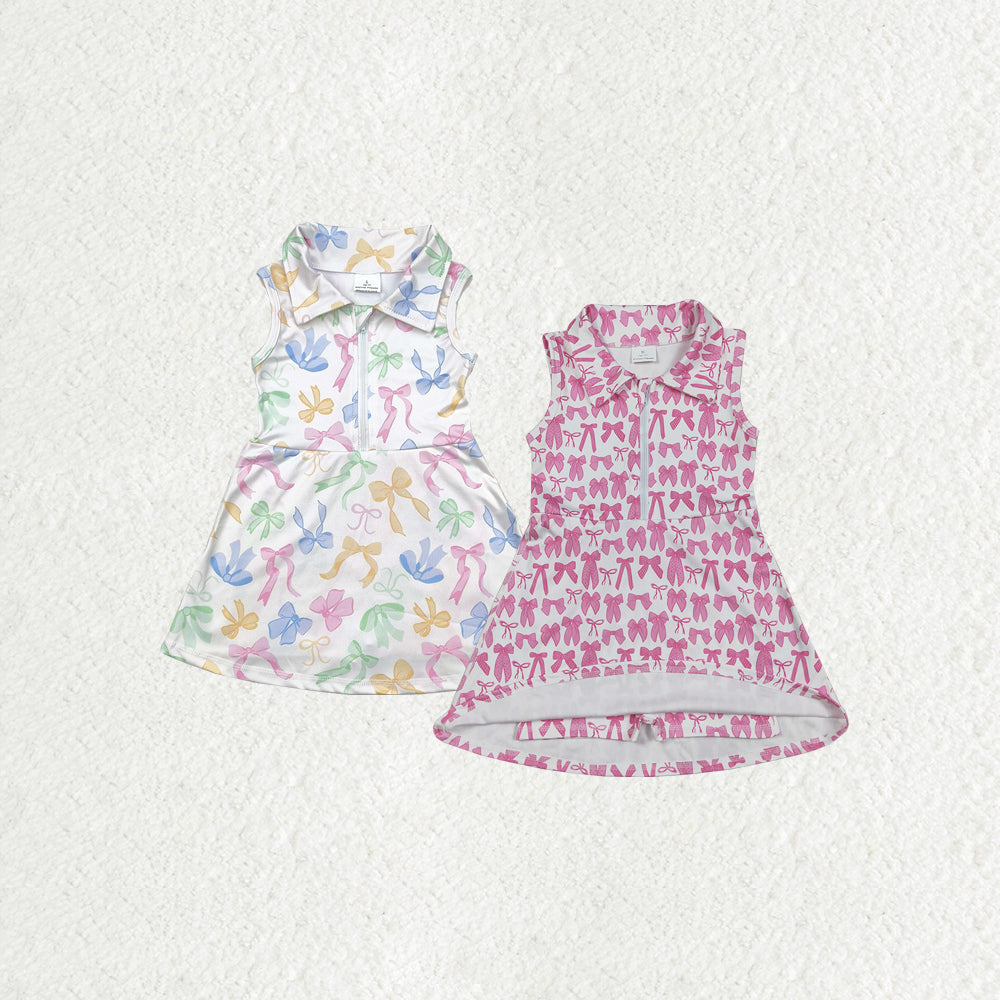 Sibling Baby Girls Colorful Bows Yoga Active Wear Skort Knee Length Dresses