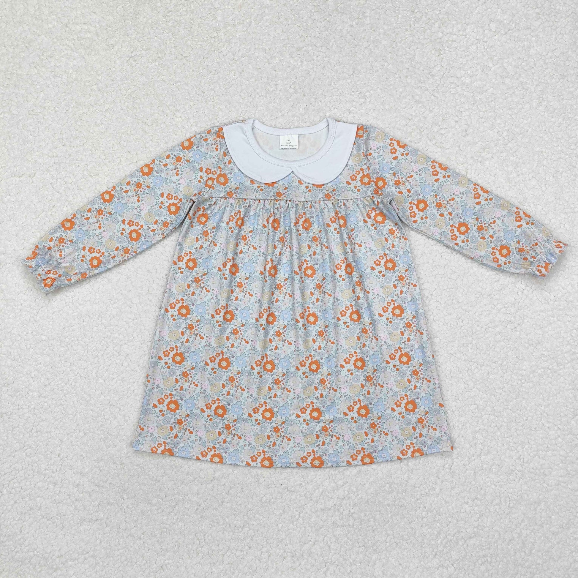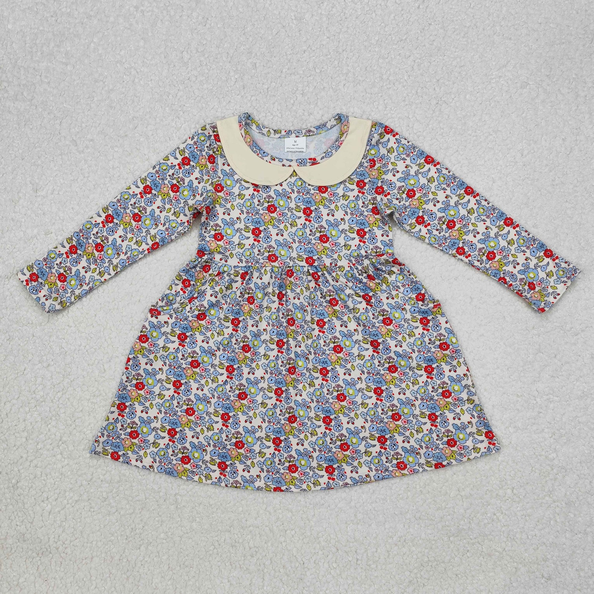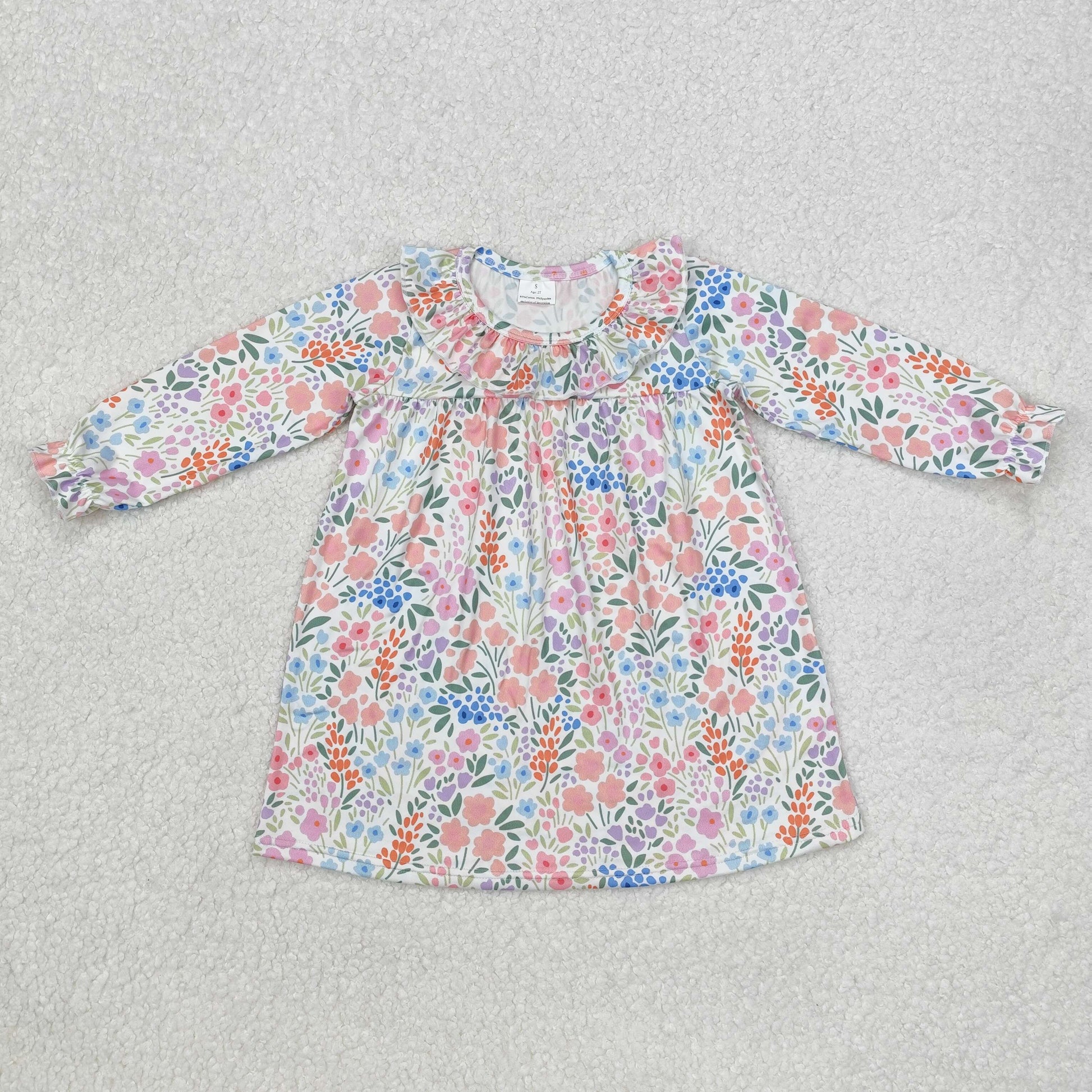 Sibling Baby Girls Flowers Plaid Long Ruffle Sleeve Knee Length Dresses