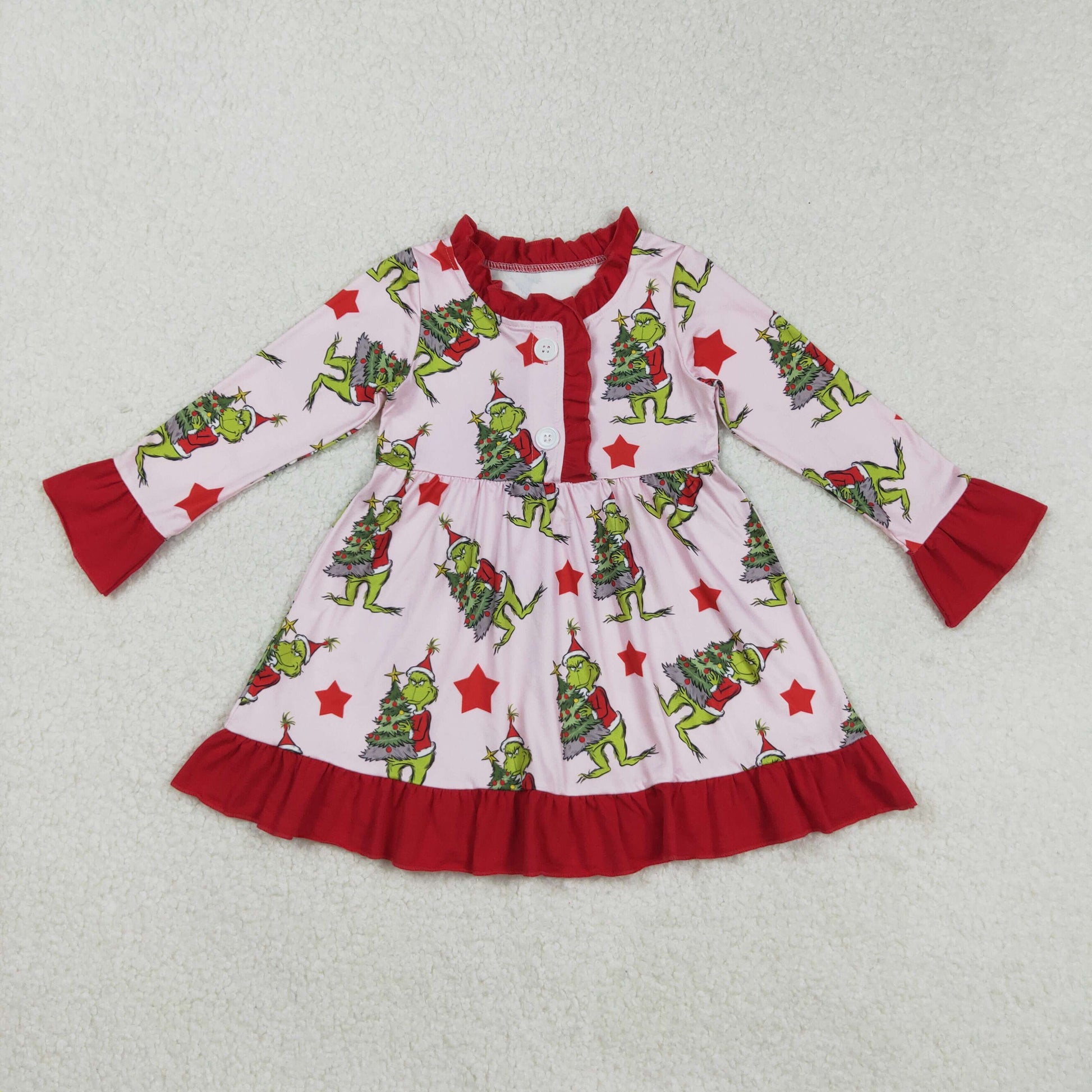 Sibling Baby Girls Grin Trees Lights Christmas Ruffle Knee Length Dresses