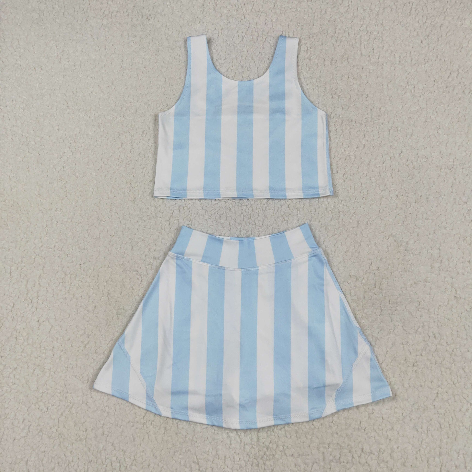 Sibling Baby Girls Sleeveless Stripe Plaid Athletic Skorts Dresses Sets