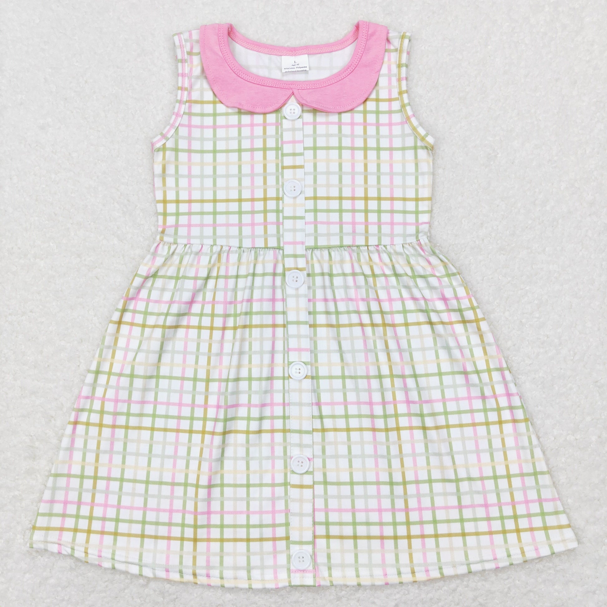 Sibling Baby Girls Stripe Checked Ruffle Sleeve Knee Length Dresses