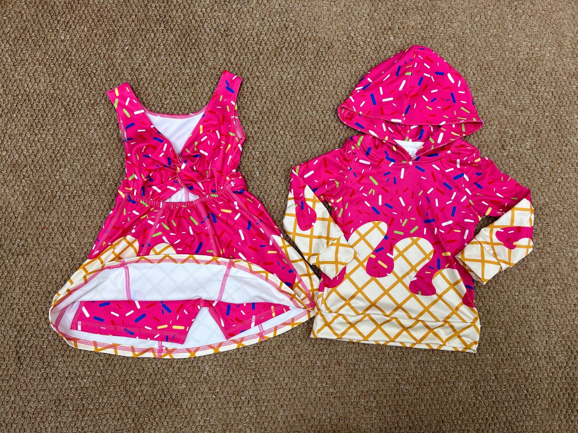 Sibling Baby Kids Pink Drip Team Hoodies Top Yoga Short Knee Length Dresses