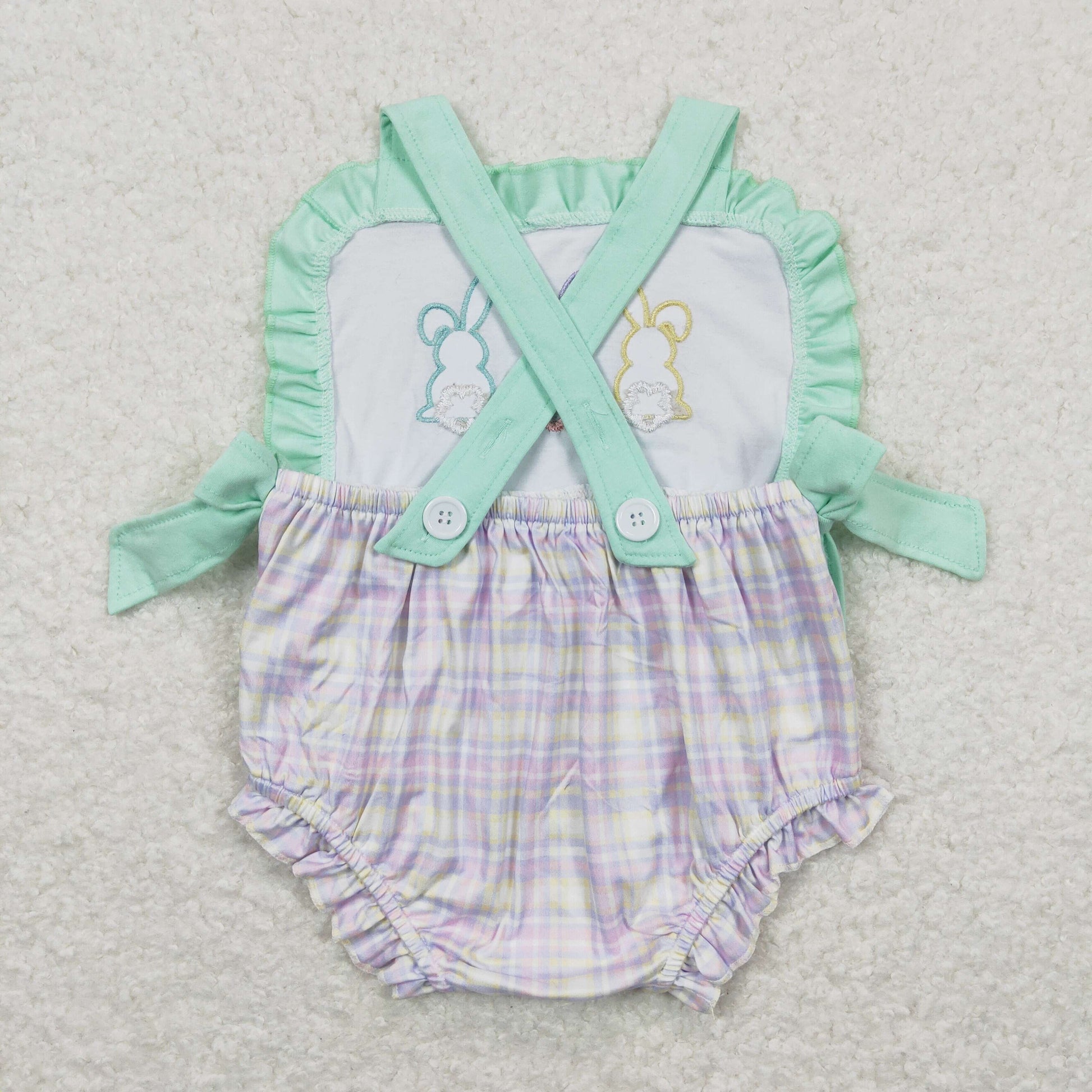 Sibling Baby Kids Embroidery Rabbits Ruffle Pants Easter Clothes Set Rompers